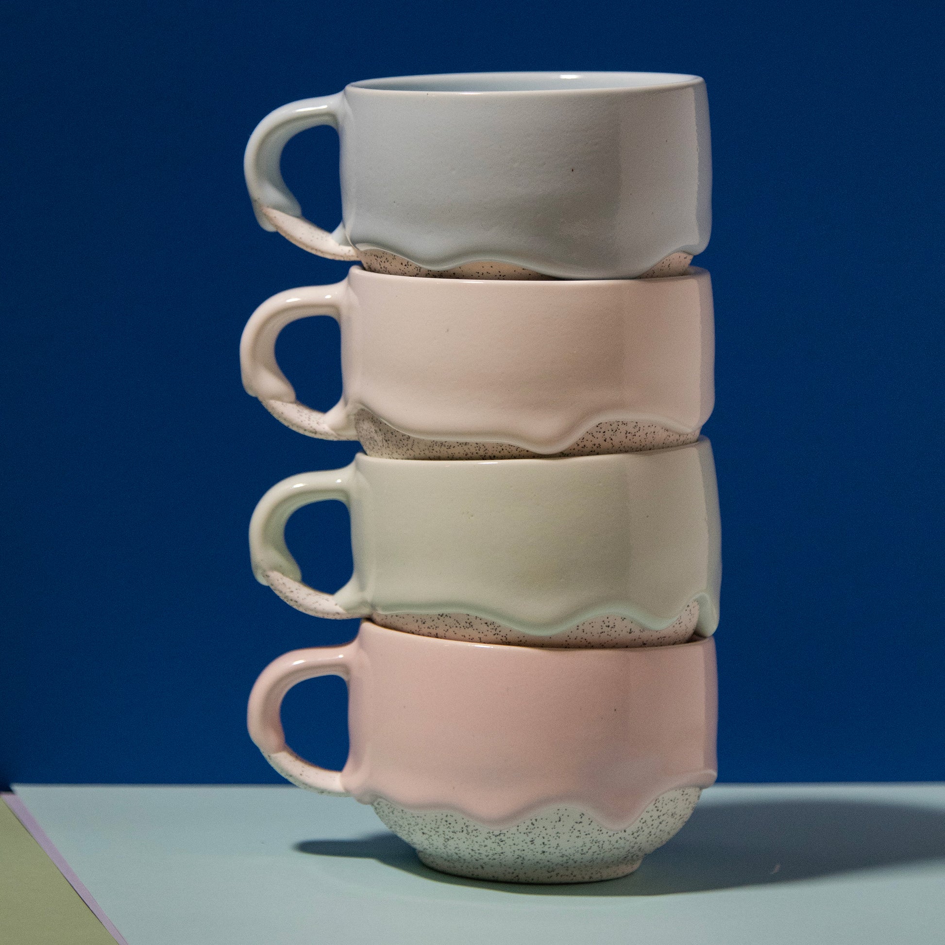 - Each mug is one-of-a-kind, varying slightly in size, shape, and drippyness